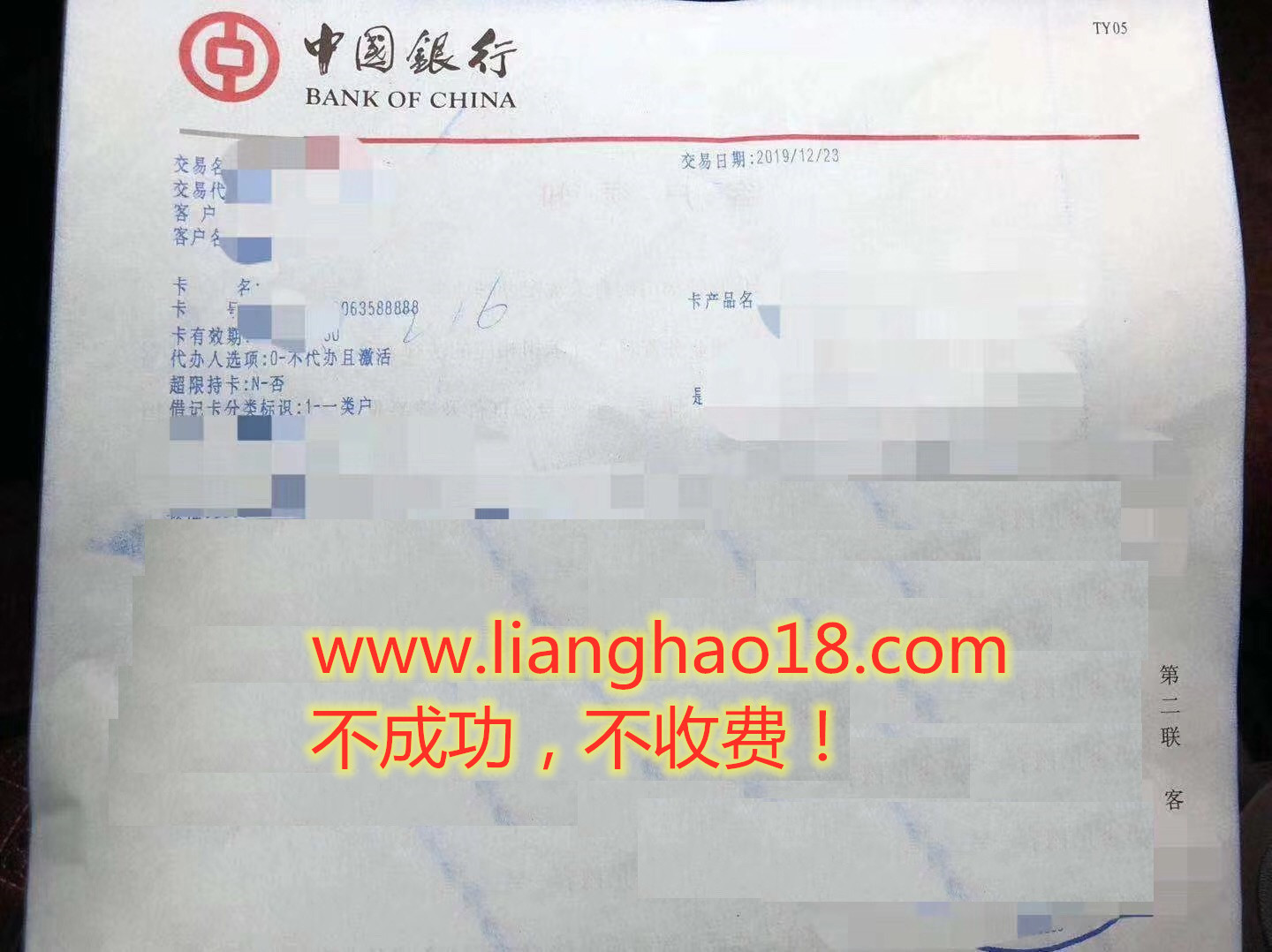 2019年12月23日客户办理的中行中国银行靓号选号尾数588888 中银财富卡办理